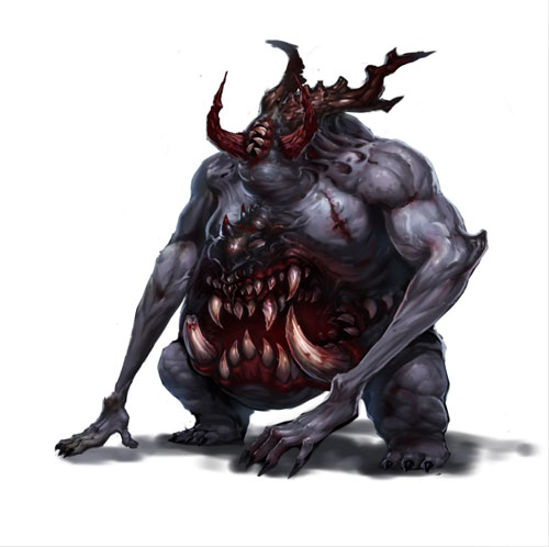 暴食小鬼同样是一种丑陋血腥的魔物,名为小鬼却有着庞大的身躯,一张嘴已经没法满足他们无尽的食欲,肚子上的巨口无时无刻不在寻找着食物。所有敌人和猎物在他们面前都会尸骨无存。