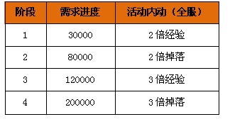 活动规则:活动期间,开启纪念牌玩法。收集[军魂石]前往长安城NPC【祈福碑·圣童】处提交可获得(英雄嘉奖状),并可增加本服祈福碑建设进度。当建设进度达到一定要求后,将会开启全服活动,活动及建设度要求对应关系如下: