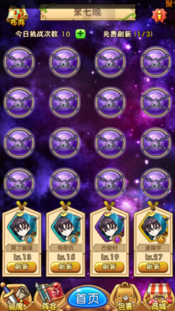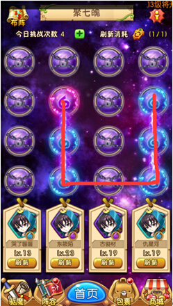 每个卡牌都有个命格镶嵌的功能,那么命格从何获得呢?没错,就是在聚七魄里!聚七魄每天5点刷新后都会有10次免费挑战机会,在推图做其他活动的过程中也会有几率掉落聚七魄的挑战机会,所以建议大家在推完图做完所有其他活动之后再来刷聚七魄。