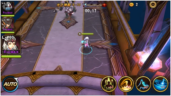 最简单有效的推图方法,选择防御型英雄穿戴好装备一路横冲直撞,偶尔释放技能即可,适合单手操作的玩家。