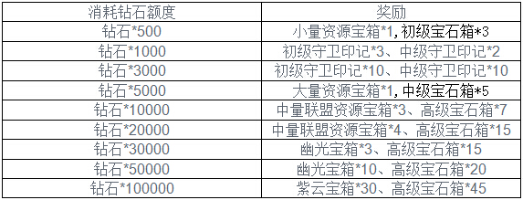 【活动内容】活动期间,玩家消耗钻石达到指定的额度,即可前往活动界面领取一份奖励;