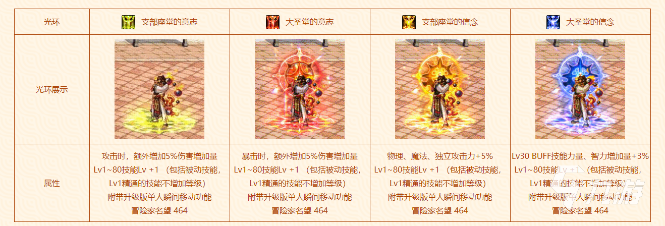 国庆光环与称号也是一样,有四种类型可以选择。不过对于说出来职业的话,只有三种可选。分别是追加黄字伤害以及三攻,还有暴击伤害。对于奶系职业的话,就一定要选择力量与智力。才能最大限度的发挥出技能加成效果。 然后其他三种伤害的光环,按照称号的选法去选即可。