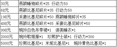 活动内容:充值满一定金额,即可获得女神服装,充实衣柜,让女神为你秀身材。