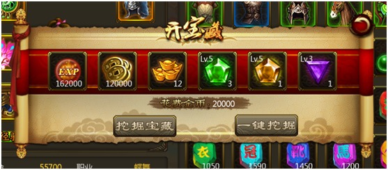以类似于抽卡的形式开启宝藏,开启挖掘后以获得经验、金币、元宝、宝石等丰厚的奖励