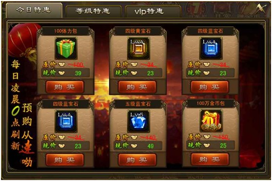 达到一定等级后,会开启【超级特惠】,【超级特惠】中有个【今日特惠】,每天都会提供6件打折商品给玩家抢购,欲购从速哦~~