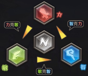 A:力智敏三属性是相生相克的:力克敏,敏克智,智克力。克制敌人的时候能打出1.2倍的伤害!不过被克制时,只能打出0.8倍的伤害了。如果对手无属性(N),那么既不会克制也不被克制。