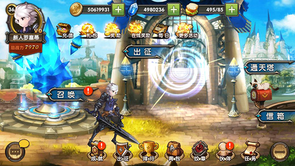 A:在主城的上方,点击【每日】按钮可以打开每日必做界面: