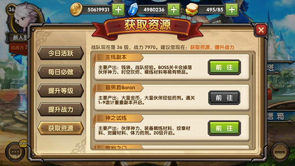 再点击左侧的【获取资源】就可以查看到材料、道具的获取途径啦