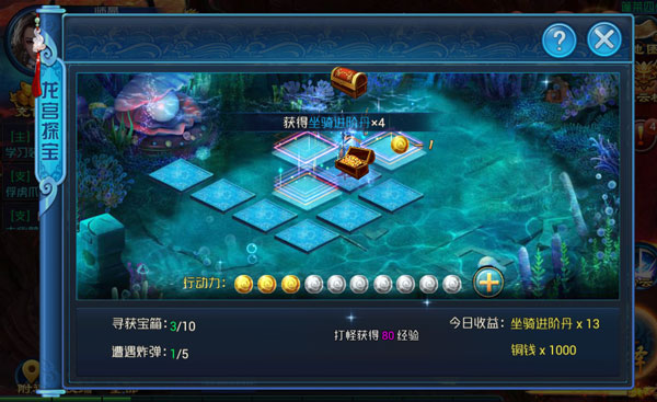 4发现宝箱可以获得大量的坐骑进阶丹或是铜钱奖励;