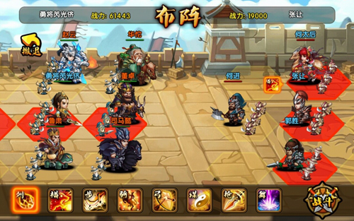 l 布阵:在战斗开始前,玩家可以预先调整武将的站位顺序,达到克敌制胜的目的。