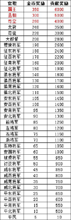 官职和对应的奖励