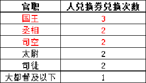 随机蓝装宝箱和随机紫装宝箱每天可兑换10次。人兑换券的兑换次数与官职有关。