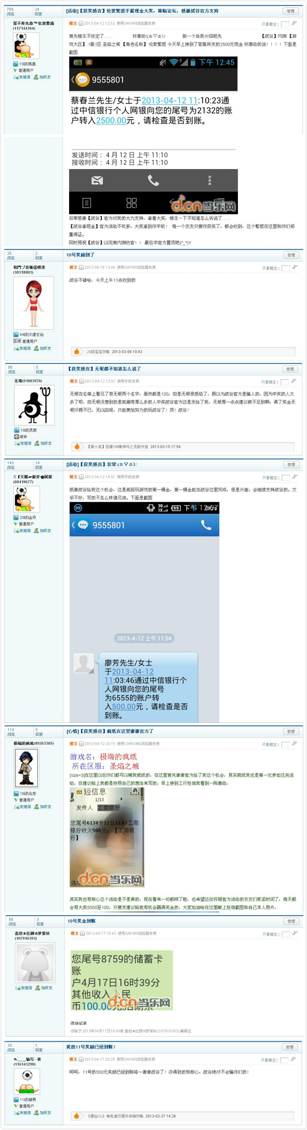 在此,特放出部分玩家获奖感言和邮寄单扫描,以此为证: