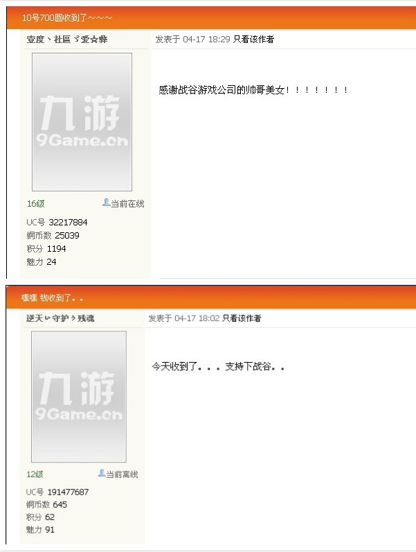 多谢以上各位玩家的获奖感言。由于篇幅有限,我们只能发布部分感言截图和邮寄单据,但《战谷》良心保证,真金白银绝对送到每一位获奖玩家手中。