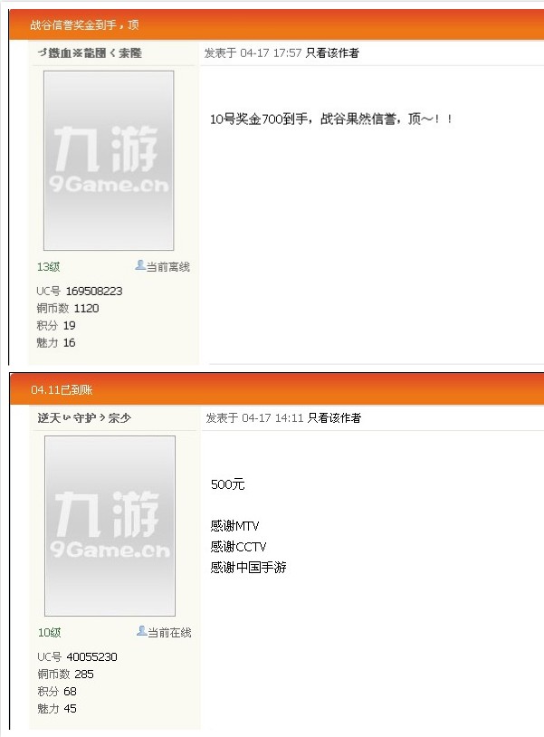 相信很多获奖玩家已经收到了《战谷》发出的现金奖励,您的每一条反馈我们都重视,您的每一个意见我们都进行收集和整理,《战谷》百万内测还有最后两天!现金奖励等你来拿!也欢迎各位获奖玩家晒奖品奖金!若您能分享获奖感言,我们将不胜感激!