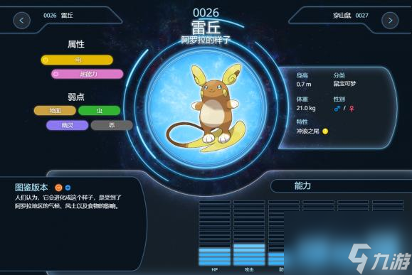 阿罗拉雷丘拥有操控精神力量的能力,能用念力操纵电力,用做成星形的十万伏特攻击对手。它会骑上集中有精神力量的尾巴,利用精神力量浮起,像滑行一样移动,有着“陆地冲浪手”这一别名。