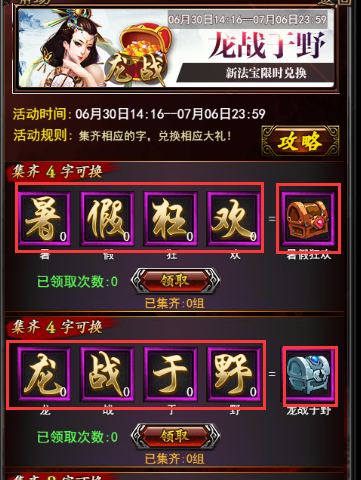 (三)龙战于野集字狂欢,新法宝限时兑换