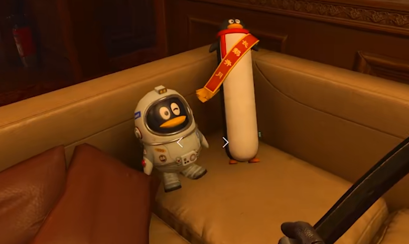 进来后左边沙发上有2个企鹅公仔,抬头墙上有壁画,有雪域迷踪、塔防战蔷薇庄园、大都会、钢铁森林的南十字、还有经典端游天梯排位的加载界面。手游目前还没pvp,或许未来也会出。