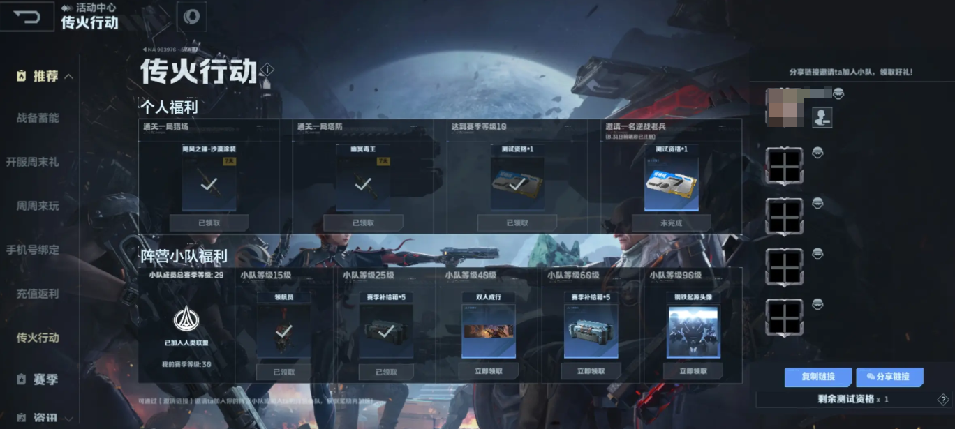 很多游戏在测试阶段会采用“传火”的方式来扩大测试规模,所谓传火通常是指已经获得测试资格的玩家参与游戏内的活动,完成特定指标后就可以邀请1名或者多名其他玩家也参与...[详情]