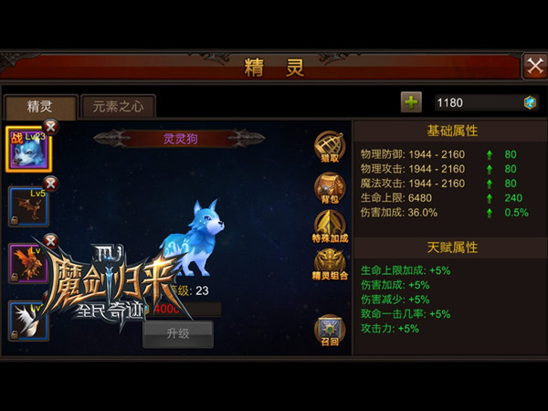 百搭精灵,充值即送!或许你人品不够好,或许你手不够红,或许你抽奖永远没有高端精灵。但灵灵狗的众多缘分,绝对是玩家朋友们迅速凑出“精灵组合”系统加成,使战斗力稳健提升的不二法门!