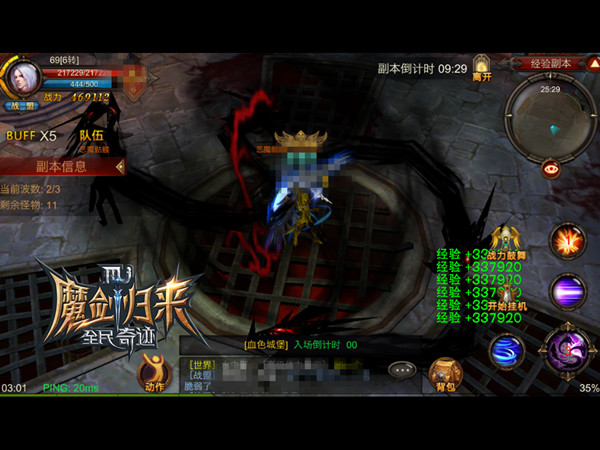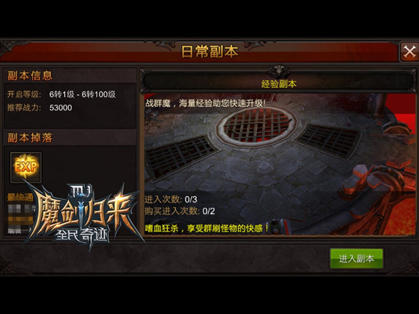 那么,这个在手游界几乎成为《全民奇迹MU》专利的副本模式,其收益究竟如何呢?经过小编的实测计算,其绝对能担的上游戏内经验获取方式之最!以6转这一中后期等级为例,通关一次经验副本能够获得3*20*330000的经验值,而所费时间,不过60-90秒,相比于普通的日常任务和古战场,单位时间的收益几乎高出了一倍有余。因此,对于那些VIP等级较高的玩家,每天花费些许钻石购买经验副本次数,当为升级之首选!