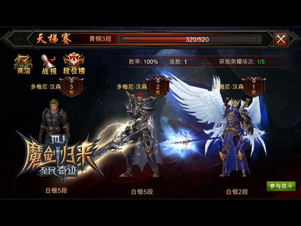 在目前版本《全民奇迹MU》的天梯赛中,共分为青铜、白银、黄金、白金、钻石5档,每档又分5段,玩家朋友们在跨越了青铜段位后,便会真正开启天梯赛的积分模式,战斗胜利会获得积分,战斗失败则扣除积分,获得/扣除积分跟对手段位和自身段位有关,而连胜会获得额外积分奖励。而对于那些尚未将自己的角色打造的足够强大的朋友们也不必灰心,天梯系统段位积分每月1号凌晨0点清空,重开新赛季,所有的勇士们又将重头挑战,重定江湖。