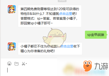 第四期免费勋章等级达到120级可获得的特性B车叫什么?这是QQ飞车手游10月14日微信每日一题的问题,这道题不难哦,玩家可以直接在链接中找到答案,下面一起来看看...[详情]