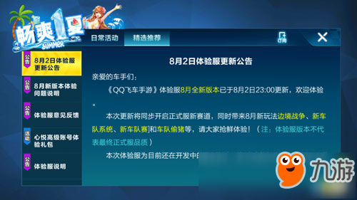 QQ飞车手游体验服8月2日23点更新,本次更新重新开启限免注册,新玩家可以直接进入游戏注册角色,本次更新还加入了全新的边境战争模式和车队模式更新,下面雨落就为大...[详情]