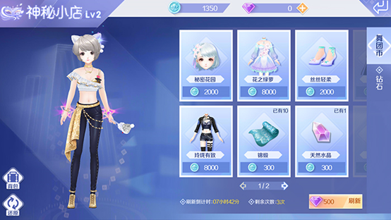 神秘小店:这是舞团中的商店,神秘小店中的服饰会随机更新,玩家需要使用舞团币才可以进行购买,舞团币可以通过参与舞团活动获得。舞团神秘小店中出现的服饰,还可以通过工坊中的进化功能,来升级为更高品级的服饰!