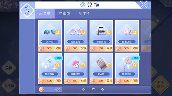 评选赛:服饰评选赛每期都会有一个主题,我们可以根据主题来搭配服饰,然后可以直接参与到比赛之中,评选赛每期参与都可以获得一定数量的评选币。评选币可以用来兑换服饰奖励,目前只可以兑换到饰品奖励,其中包含了面饰、手持两种。