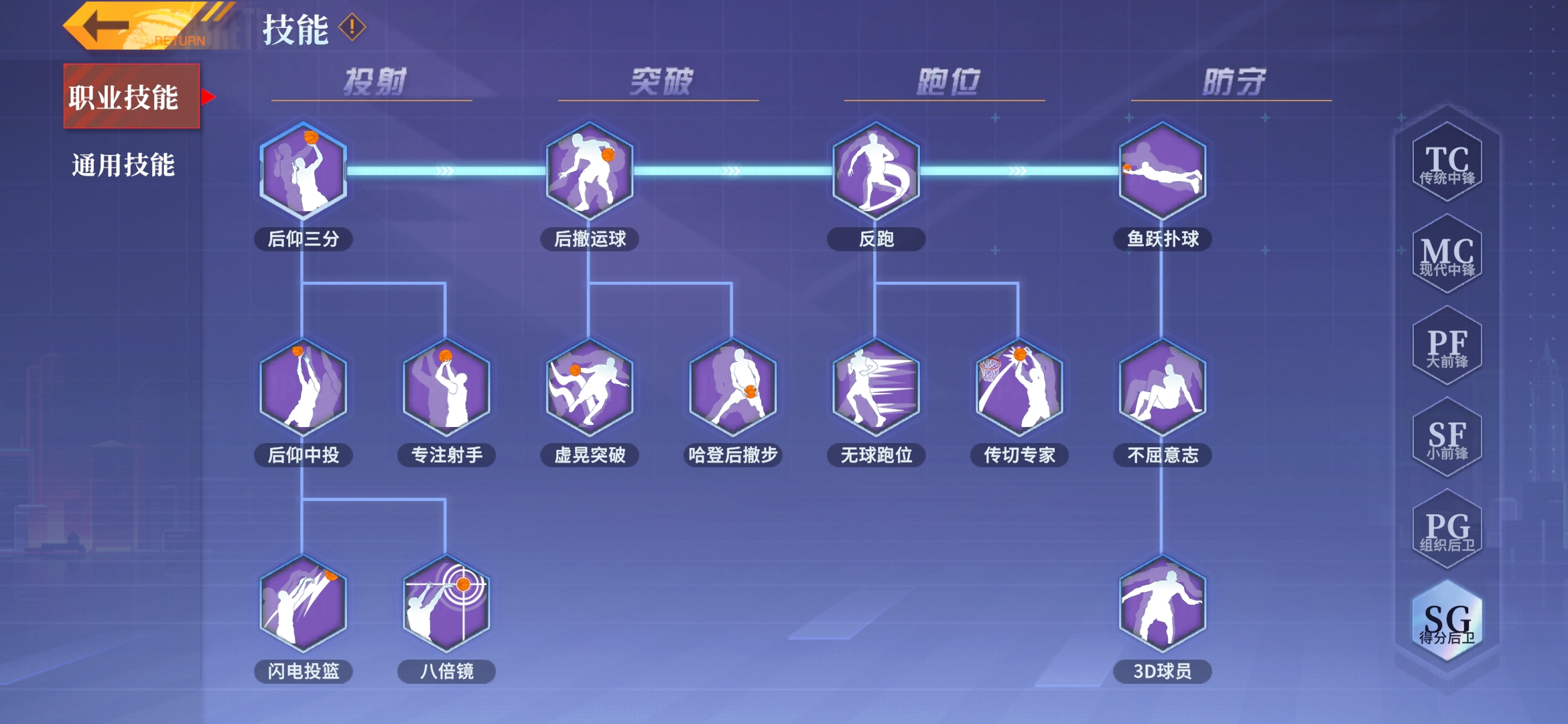 手机游戏> 全民大灌篮> 游戏攻略> 职业篇> 《全民大灌篮》得分后卫(SG)技能攻略