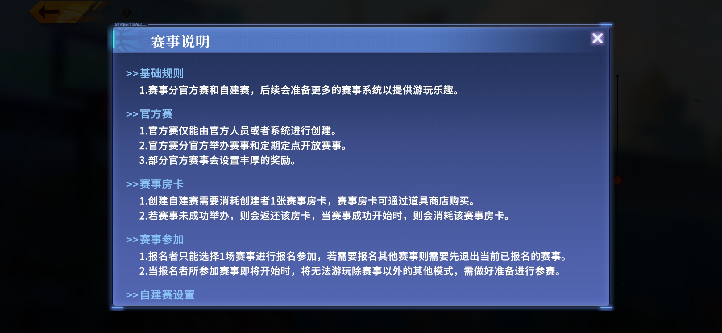 1.创建自建赛需要消耗创建者1张赛事房卡,赛事房卡可通过道具商店购买。