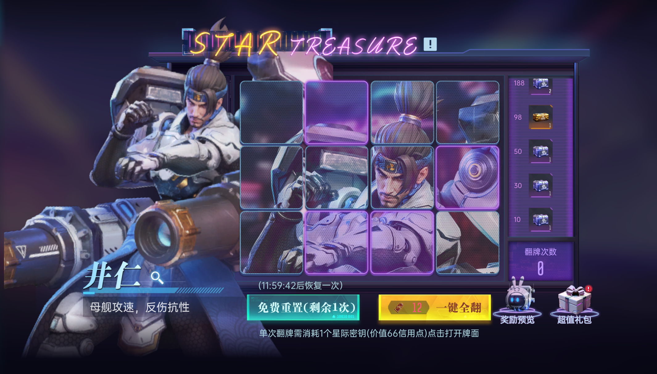 S5的星际宝藏依然需要星际密钥进行抽取,一个星际密钥价值66信用点,一轮翻牌需要12个星际密钥,实际花费的信用点与之前一致。