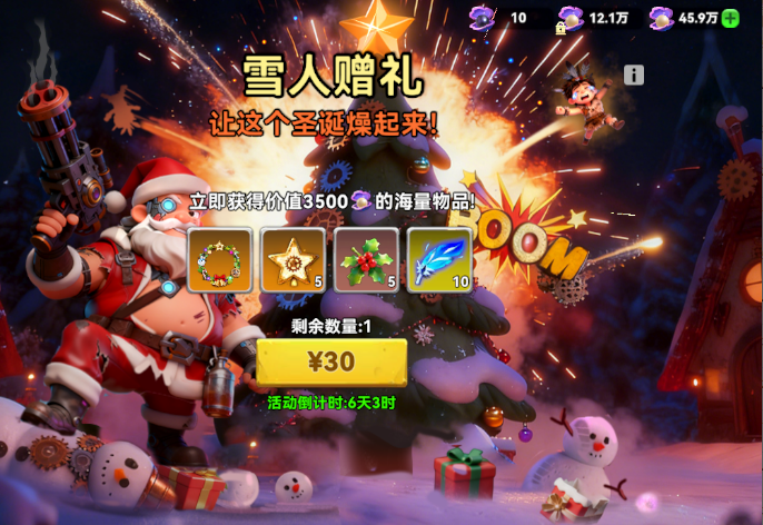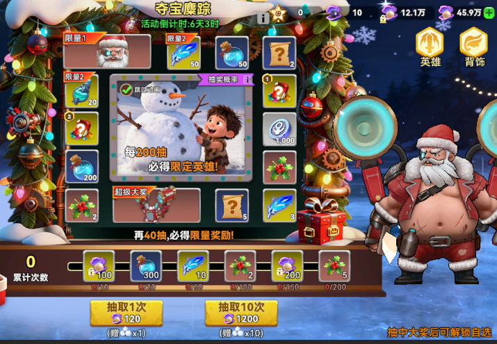1、玩家消耗圣诞星抽取奖池中的奖励,并额外赠送雪球