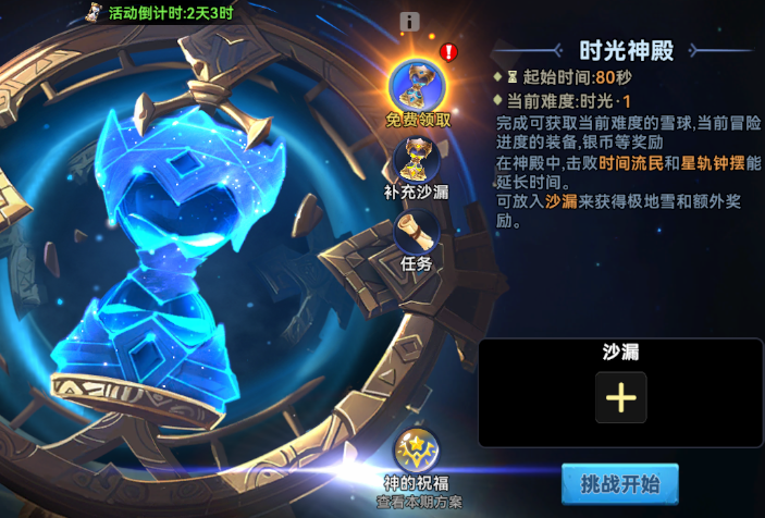 3、挑战神殿难度越高,获得的雪球数量越多,完成时光神殿任务可获得奖励;
