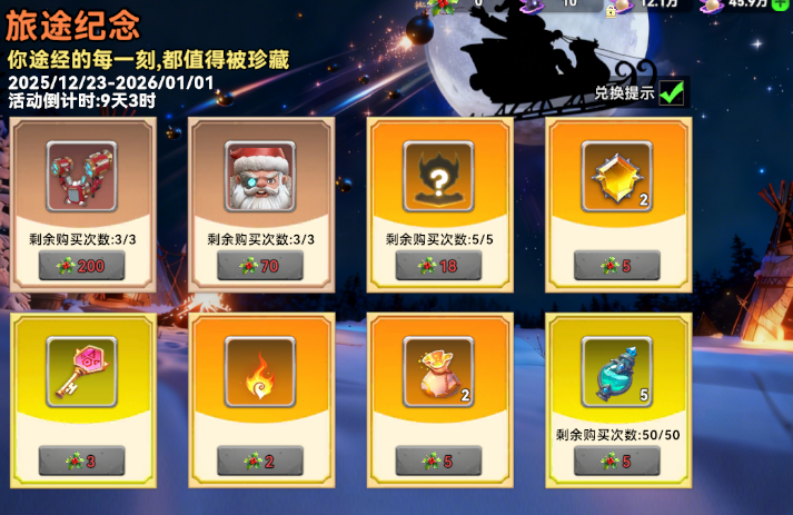 圣诞期间部落将上新雪人赠礼橱窗,礼包内含有圣诞限定头像框、槲寄生等节日道具,购买一档后即解锁下一档,最高可解锁5档礼包。