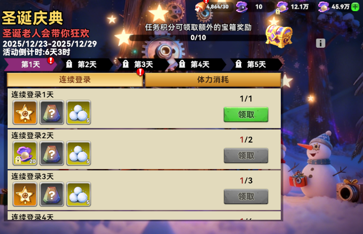 每完成10个任务,可以领取一次额外宝箱,从任务种可以获取大量珍贵的活动道具;
