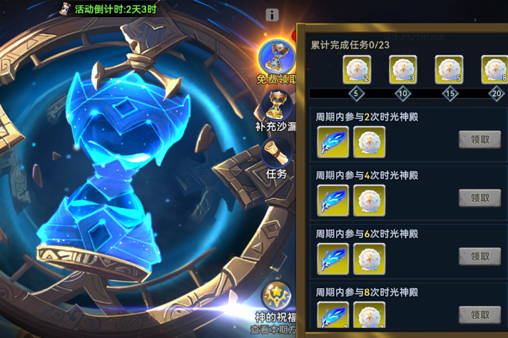1、使用沙漏挑战时光神殿,沙漏有不同的奖励和挑战;