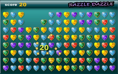 Fun, addicting, matching game! Made with pretty, heart, jewels. Star bursts get bigger with larger matches.