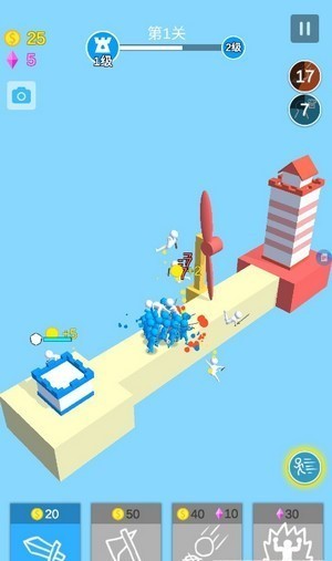 人海战术是一款很简洁的塔防跑酷闯关的游戏,人海战术游戏既有塔防战争玩法,同时人海战术还要控制角色去道路上奔跑,完成人海战术游戏一个又一个关卡,挑战性非常高!