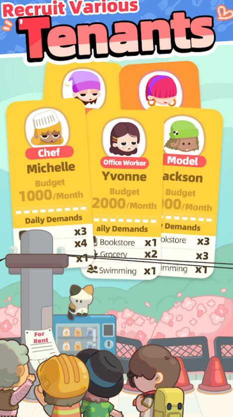 Rent Please Landlord Sim是一款休闲益智类的游戏,游戏采用了非常经典的模拟经营游戏的元素,在游戏中玩家将要扮演成一名房东,将自己的房子租给不同的租户,每个租户的性格和需求都不同,玩家要充分的开动自己的大脑,尽可能的满足每一位租客的需求,经营好自己的小公寓,将自己的小公寓做大做强,获取大量的资金。