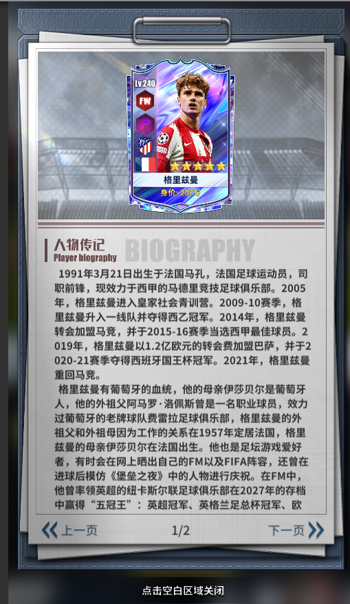 手机游戏> 任性足球> 游戏新闻> 球员预告 | SSS球员格里兹曼即将登场