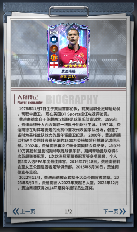 手机游戏> 任性足球> 游戏新闻> 球员预告 | SSS球员费迪南德即将登场