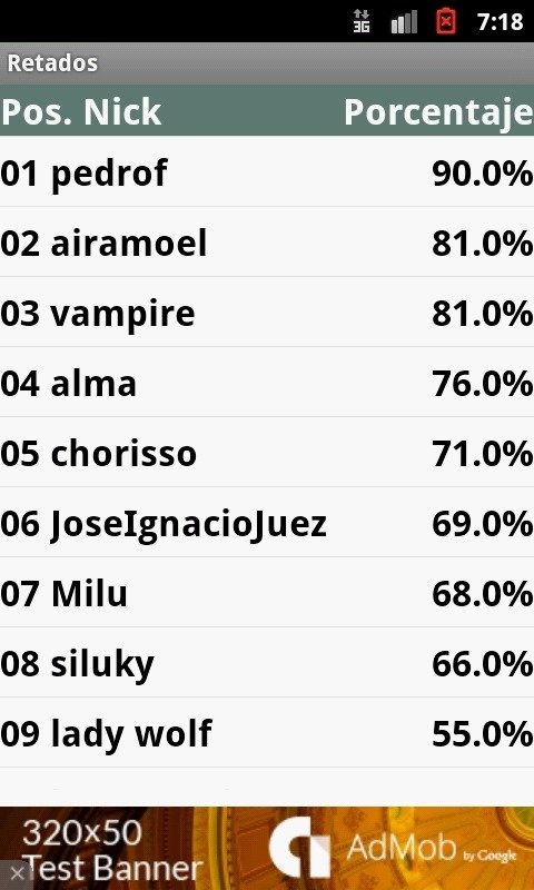 Juego de retos on-line, ahora puedes retar a tus amigos para ver quien sabe mas.Crea retos contra tus amigos. Comprueba tu estado. Sube posiciones en el TopTen.