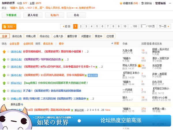 Hi,米娜桑,这里是喵酱!爱生活爱爆料的小吃货一枚!昨天《如果的世界》守护测试正式开启了,喵酱发现小伙伴们真是热情满满呢,无论是在论坛里还是游戏中,全部十分热闹呢,今天喵酱就来给米娜桑爆料一下守护测试的盛况吧!