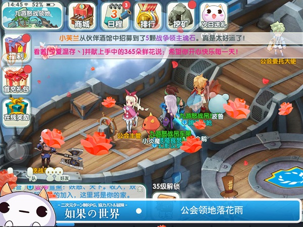 而喵酱回到公会据点时也发现,公会小伙伴们都在热热闹闹地组队做任务呢!喵酱顺便要说一句,开服第一天就有这么多小伙伴高调送花秀恩爱,花雨一场接一场,这样真的好吗?喵酱要找个天台静一静啦,谁也别拦我!