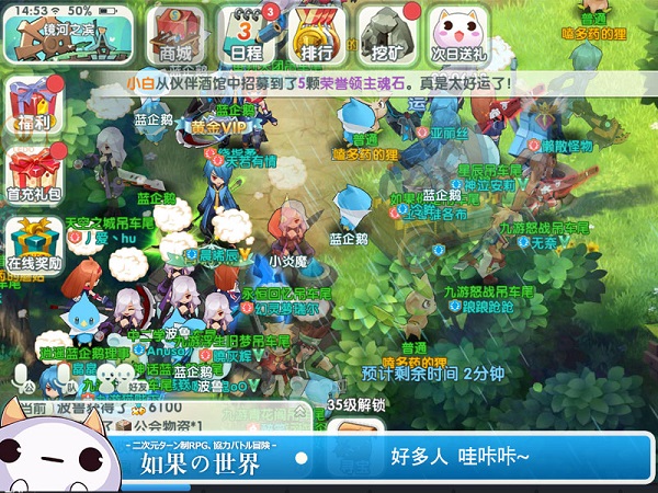 进入游戏后喵酱也是被游戏的盛况吓到了,这俨然就是另一个世界的即视感呢,这么多冒险者都在忙着打怪升级呢!看着小伙伴们头上一团团代表打斗的图标,真是很可爱呢,不知道米娜桑有木有成功把小怪KO呢!