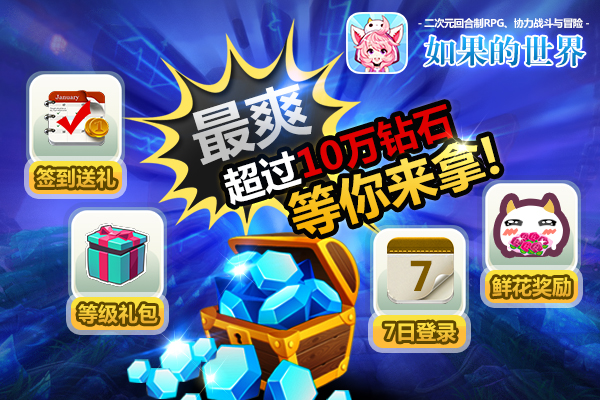 在《如果的世界》里,每日签到礼包、升级礼包、在线礼包等奖励自然是会有的。米娜桑创建角色后,次日登录游戏还会有一份特殊的礼物哟~~那就是S级萌宠“团酱”。(对!就是喵酱头上这只小团子啦~)除了金币和宠物奖励之外,只要玩家达到指定活跃度,还能获得绑钻、宝石、鲜花等丰厚奖励呢!