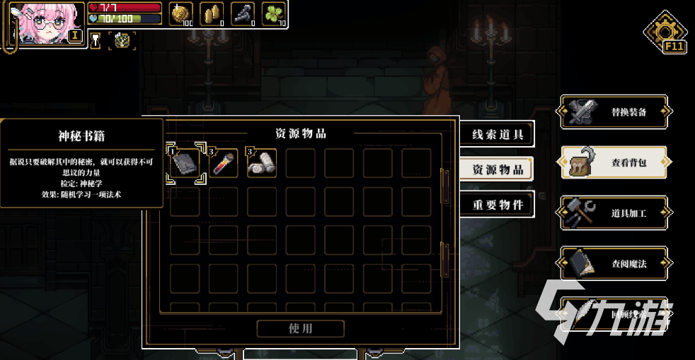 游戏中的探索部分也比较重要,如果只选择推主线,基本上就只需要10分钟到20分钟的流程。玩家就可以看到最终的boss,然后直接被拍死,所以探索也是不可以忽视的。在这一个章节中有很多可以探索的场景,例如图书馆,还有学校。场景中有发光的就能够看到,另外还有很多隐藏的神话装备等待着收集。玩家在完成隐藏的支线任务之后就可以获得装备和金钱,因此建议一定要仔细的调查每一张地图。除了探索地图之外,游戏中还有商店的场景可以买卖道具。
