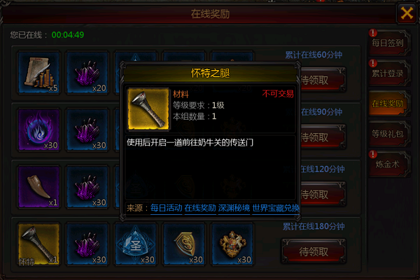 什么都不用做,在线登陆就能源源不断的获得好礼,在线时间越长,可领取的奖励越多。奖励包括升级神器所需要的各种碎片,能够帮助升级神器。